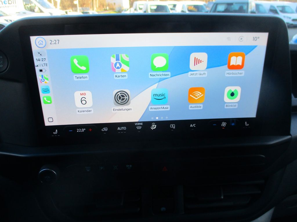 Ablage im Dachhimmel Fahrerhaus, Airbag Fahrerseite, Außenspiegel in Wagenfarbe, Bodenbelag: Teppich im Lade-/Fahrgastraum, Bordcomputer, Fahrassistenz-System: Berganfahr-Assistent, Fahrassistenz-System: Fernlichtassistent (Scheinwerfer mit Abblendautomatik), Fahrassistenz-System: Notbrems-Assistent, Fahrassistenz-System: Notrufsystem, Fenster in Schiebetür links, feststehend, Fenster in Schiebetür rechts, feststehend, Feststellbremse elektrisch, FordPass Connect inkl. eCall, Getriebe Automatik - (8-Stufen), Haltegriff A-Säule, Handschuhfach abschließbar, Heckklappe mit Verglasung, Heckscheibe heizbar, Heckscheibenwischer, Heizung mit Umluftschaltung, Karosserie/Aufbau: Bus, Karosserievariante: Normaldach, Klimaautomatik im Lade-/Fahrgastraum, Laderaumleuchte LED, LM-Felgen, Motor 2,0 Ltr. - 125 kW EcoBlue KAT, Power KeyFree-Startfunktion, Radstand 3100 mm, Reifen-Reparaturkit, Reifendruck-Kontrollsystem, Schadstoffarm nach Abgasnorm Euro 6e, Schalt-/Wählhebelgriff Leder, Scheinwerfer LED, Schiebetür Lade-/Fahrgastraum rechts, Sitz-Paket 22: Fahrersitz (5-fach elektr. verstellbar) - Beifahrereinzelsitz (5-fach elektr. verstellbar) Kunstleder, Steckdose 12V im Lade-/Fahrgastraum, Stoßfänger in Wagenfarbe, Tagfahrlicht LED, Titanium X, Traktionskontrolle, Türgriffe außen und Heckklappengriff in Wagenfarbe, USB-Schnittstelle, Verzurrösen (2), Wärmeschutzverglasung Lade-/Fahrgastraum, mittlerer Tönungsgrad, Zul. Gesamtgewicht 3,20 t