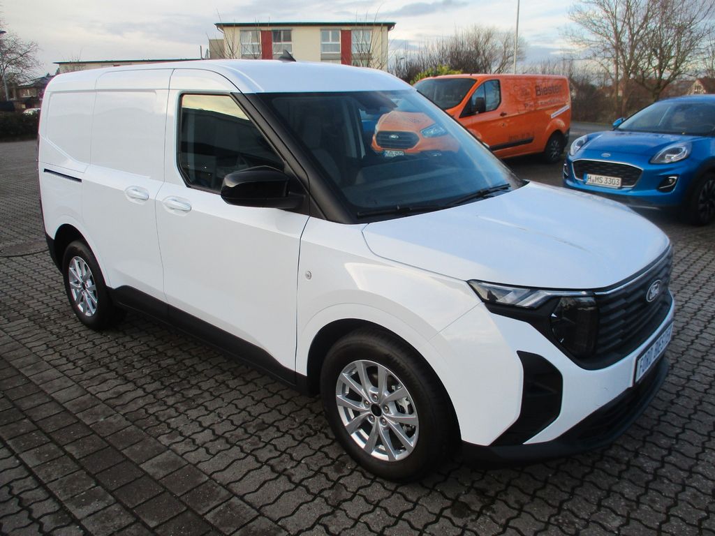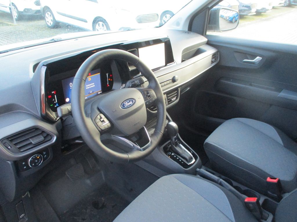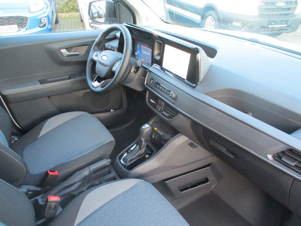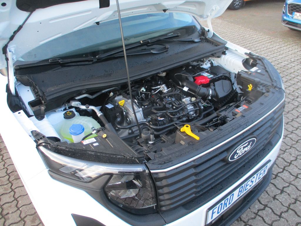 Audiobedienung am Lenkrad, Ausstellfenster Schiebetür links, Außenspiegel elektr. verstell- und heizbar, Außenspiegel schwarz lackiert, Bord-/Verbrauchscomputer, Fahrassistenz-System: Notbrems-Assistent, Fahrassistenz-System: Sicherheitssystem SYNC mit automatischem Notruf, Fahrzeugschlüssel (2) beide klappbar, FordPass Connect inkl. eCall, Fußmatten vorn Gummi, Getriebe 7-Gang - Doppelkupplungsgetriebe, Heckflügeltüren ohne Verglasung, Induktionsladeschale für mobile Endgeräte, Karosserie/Aufbau: Kasten, Klimaautomatik, LM-Felgen, Mittelkonsole lang, Motor 1,0 Ltr. - 92 kW EcoBoost KAT, Otto-Partikelfilter (OPF), Radstand Standard, Reifen-Reparaturkit, Reifendruck-Kontrollsystem, Schadstoffarm nach Abgasnorm Euro 6d, Schiebetür rechts, Sitz vorn rechts verstellbar (4-fach), Sonnenblende links mit Spiegel, Sonnenblende rechts mit Spiegel, Start/Stop-Anlage, Steckdose (12V-Anschluß) im Koffer-/Laderaum, Türgriffe außen Wagenfarbe, Zweiter Schlüssel mit Fernbedienung